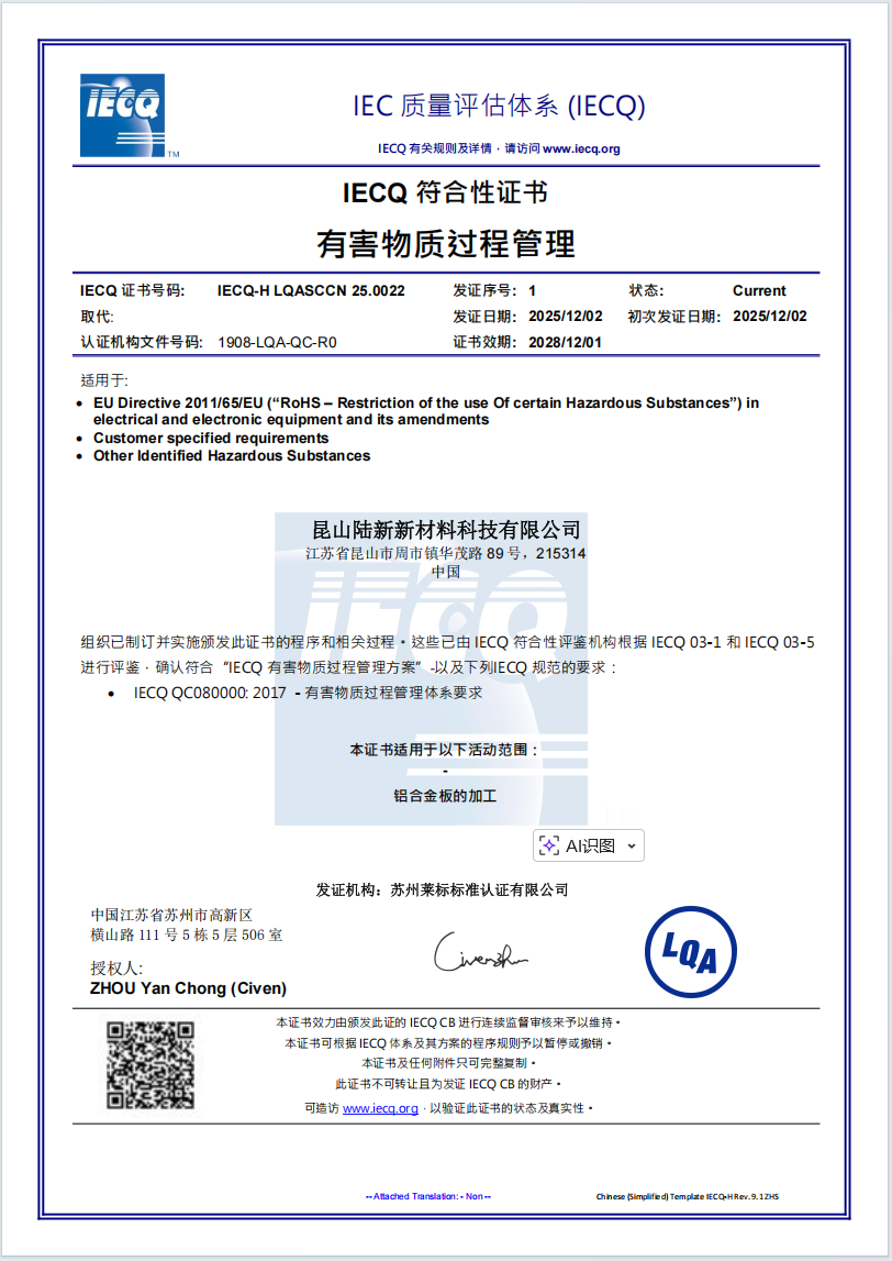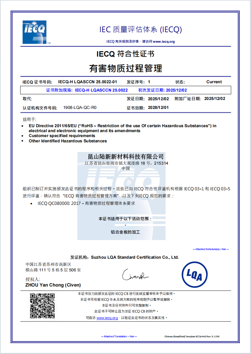 The main purpose of IECQ QC080000 is to help manufacturers, suppliers and users of electrical and electronic components and products to establish an effective quality management system for the control and management of hazardous substances. The standard covers the entire supply chain, including raw material procurement, production process, product testing and after-sales service.